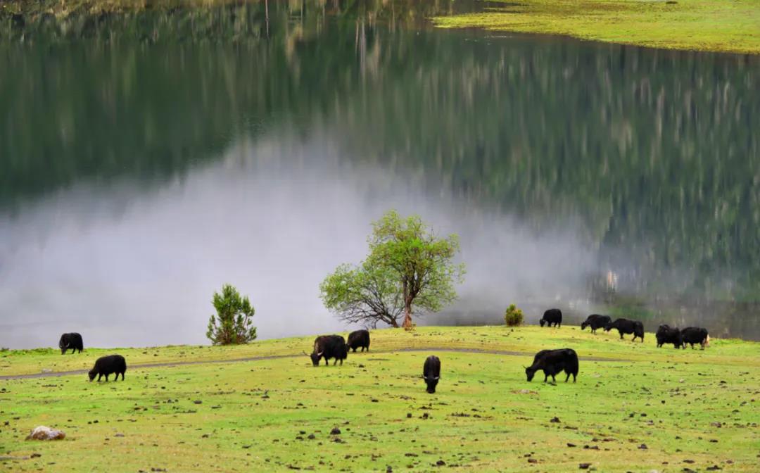 ——这里水草丰茂,散落一地慵懒的牛羊;