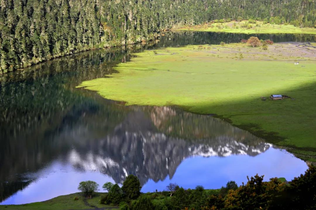 ——这里湖水清澈,倒映着逶迤峭拔的雪山;